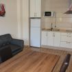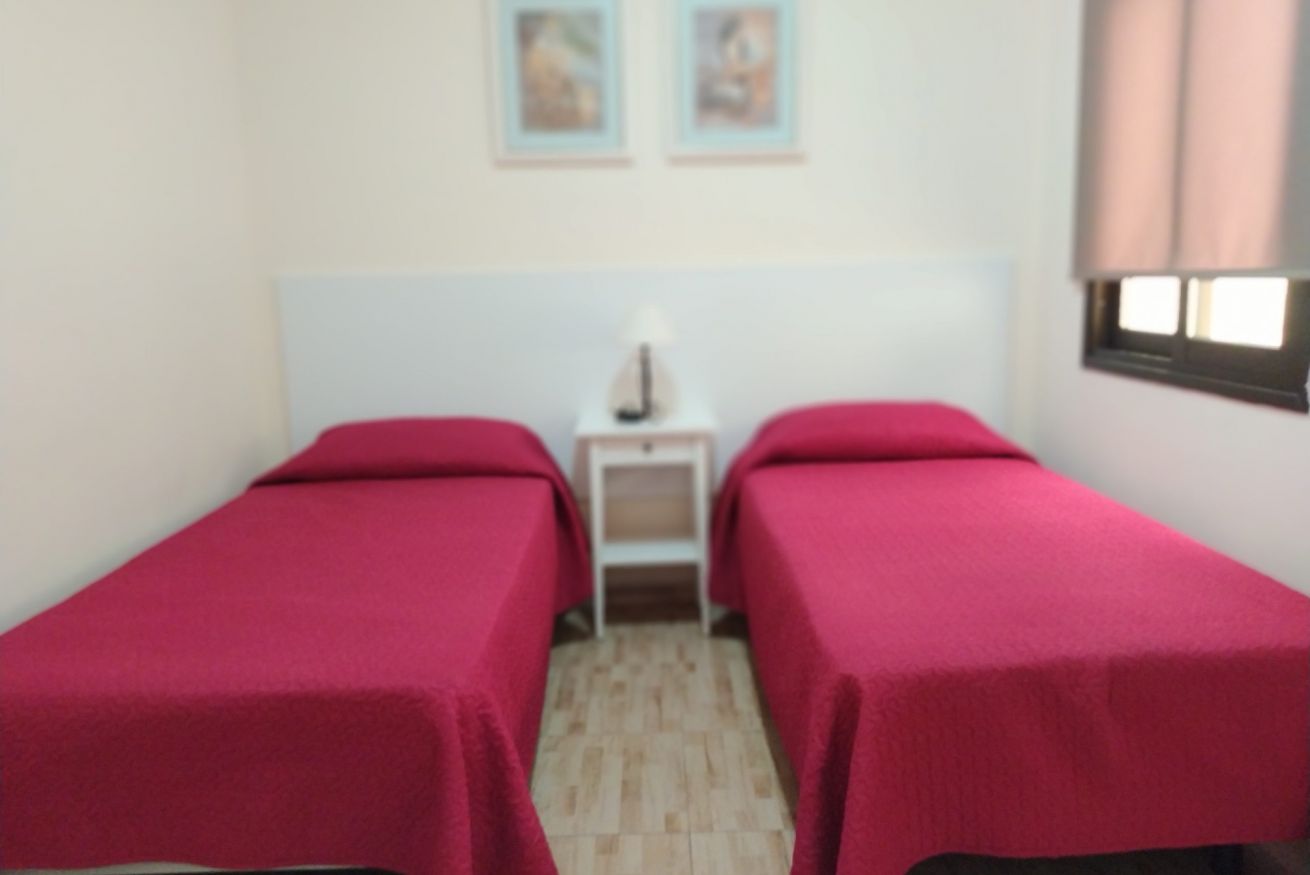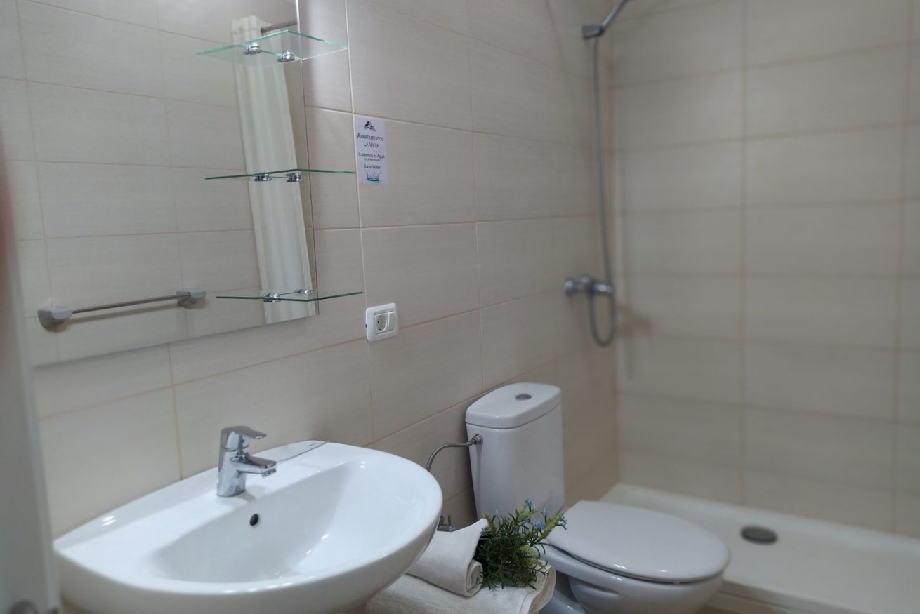 Apartamento de 1 dormitorio con camas individuales, baño con plato de ducha.