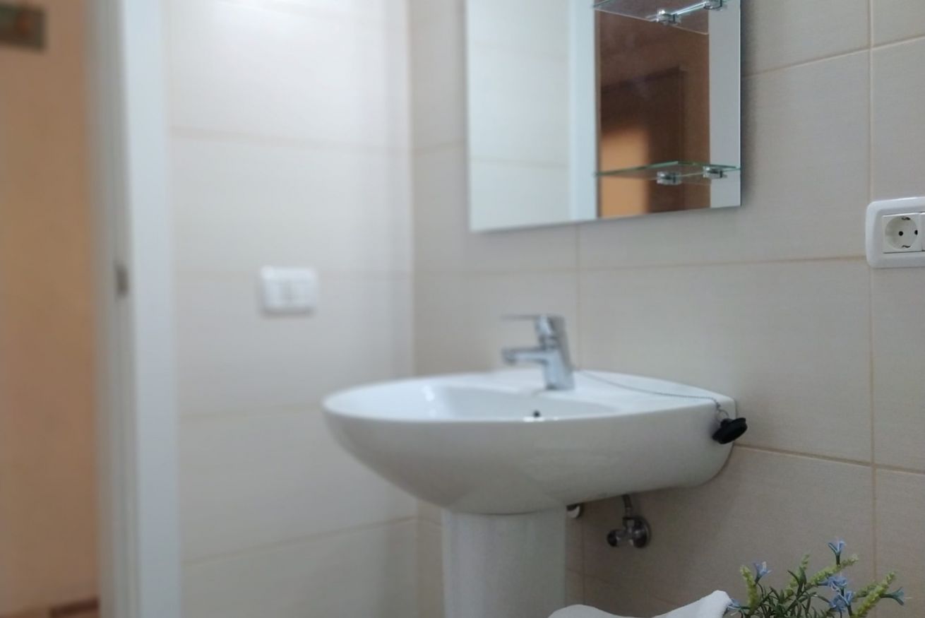 Apartamento de 1 dormitorio con camas individuales, baño con plato de ducha.