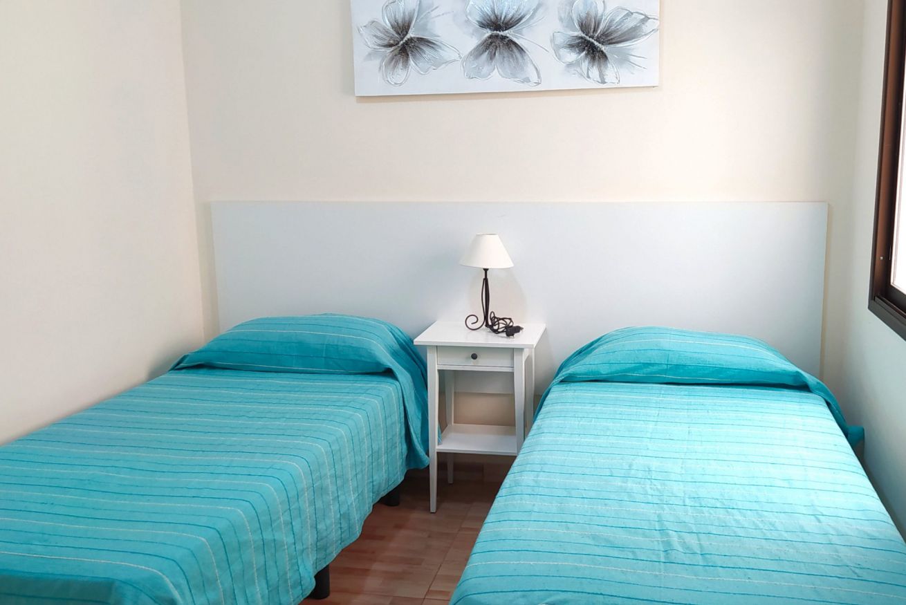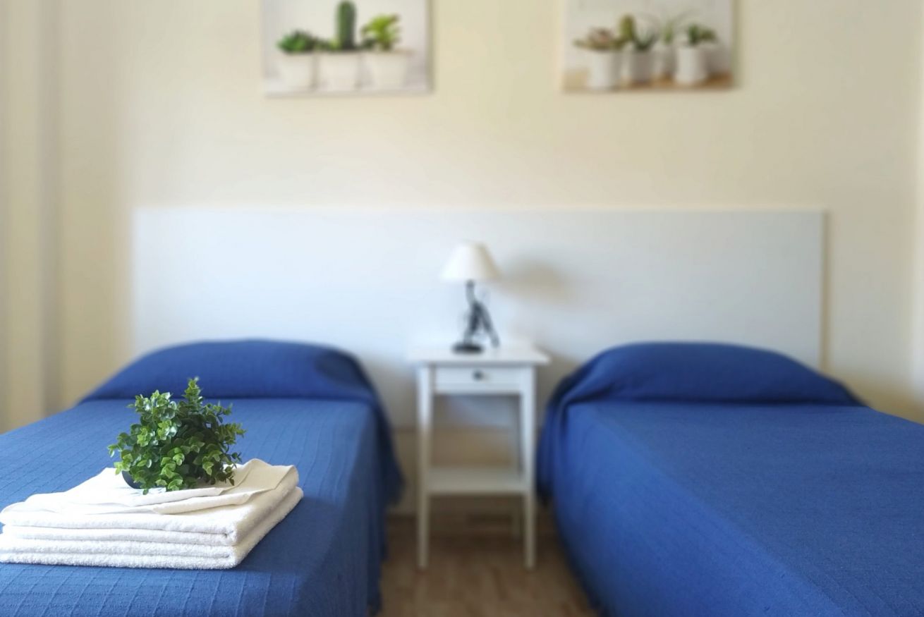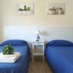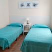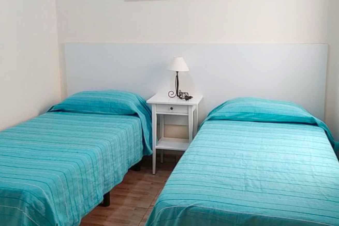 Apartamento con tres dormitorios que cuenta con camas de matrimonio e individuales.