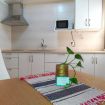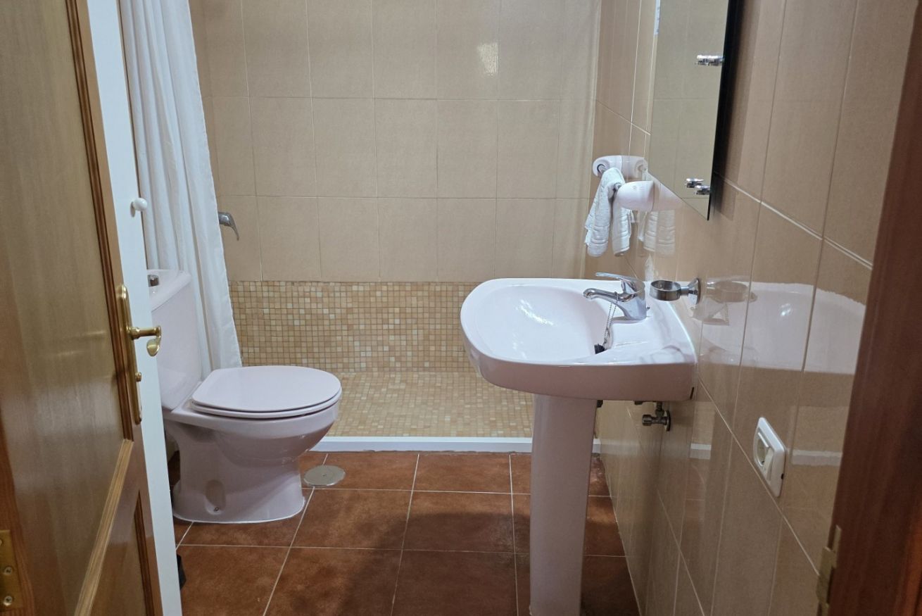 Dos baños amplios con plato de ducha, cocina equipada y espacioso salón.