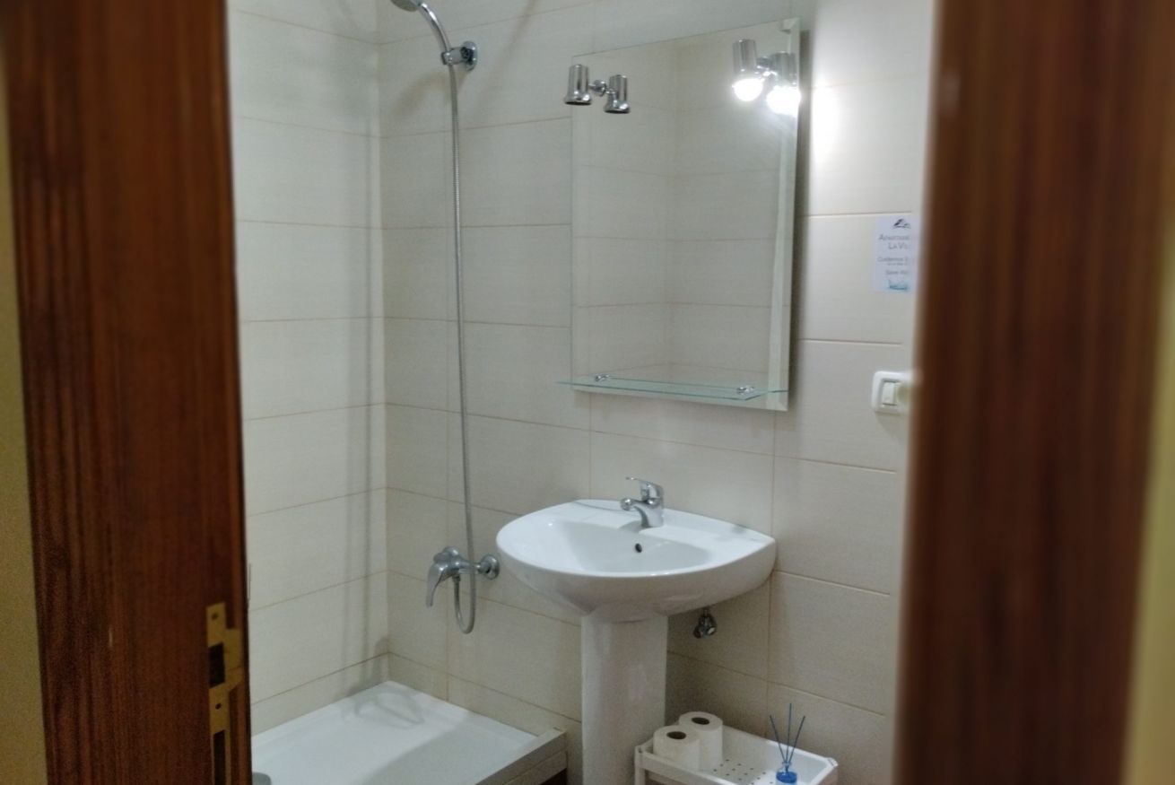 Baño con plato de ducha y cocina equipada con salón amplio desde donde disfrutar de las vistas a la bahía de San Sebastián y al parque la Torre del Conde. Acceso a la terraza superior comunitaria.