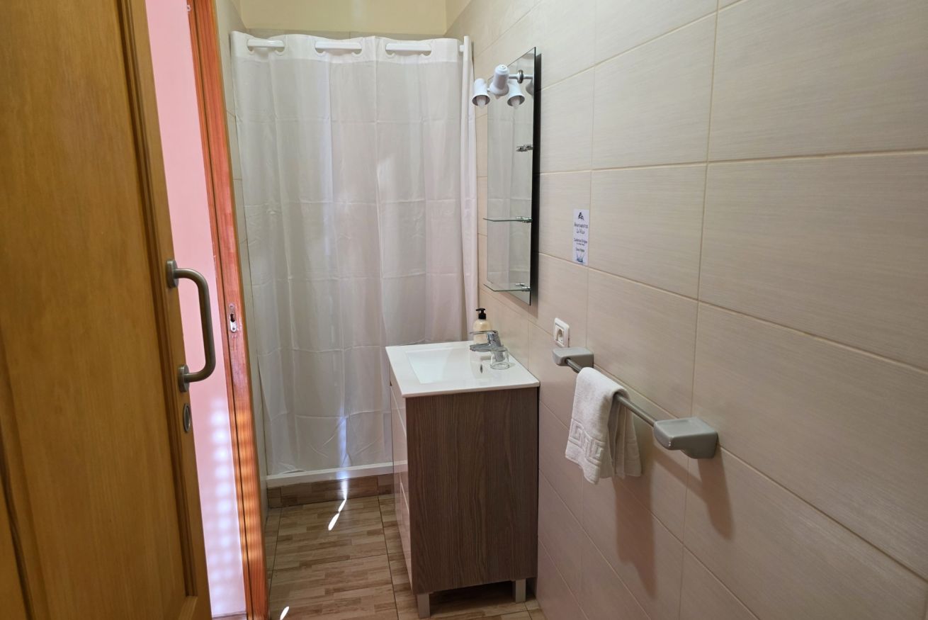 Apartamento en planta baja de 1 dormitorio con dos camas individuales, baño con plato de ducha.